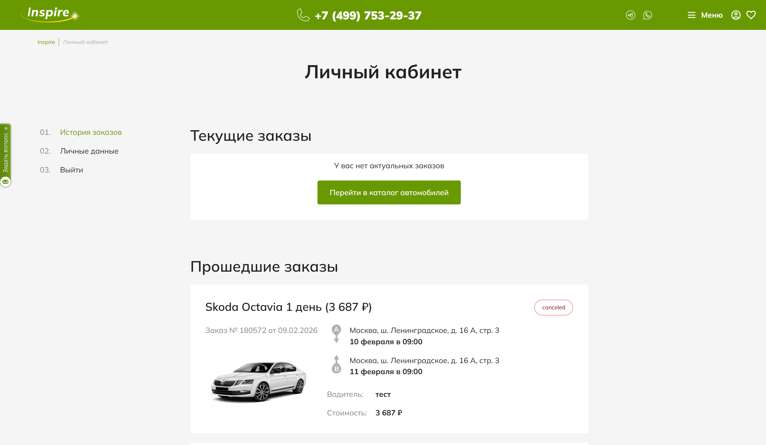 Прошедшие заказы — весь архив ваших поездок.