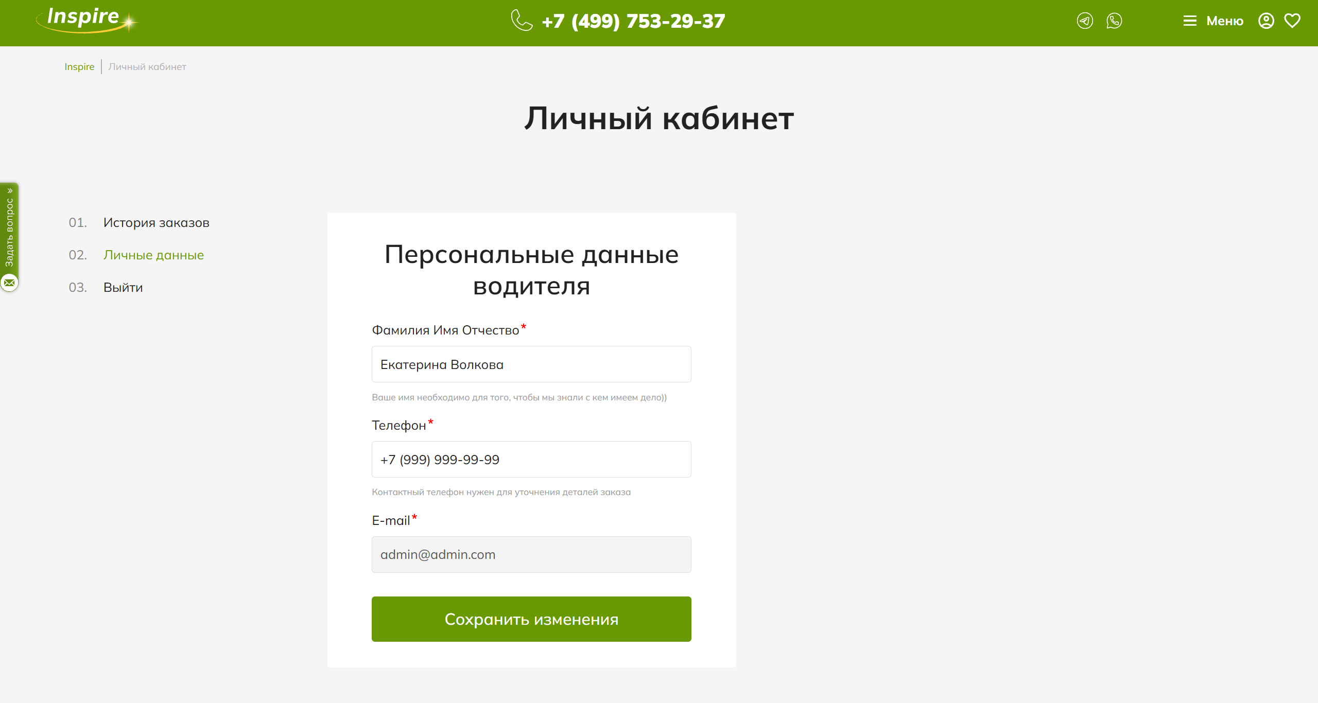 Проверьте ФИО, телефон и e-mail. Не забудьте нажать «Сохранить изменения».
