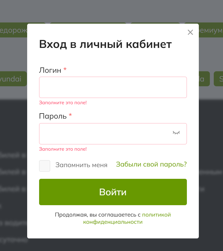3. Введите логин и пароль → нажмите «Войти».